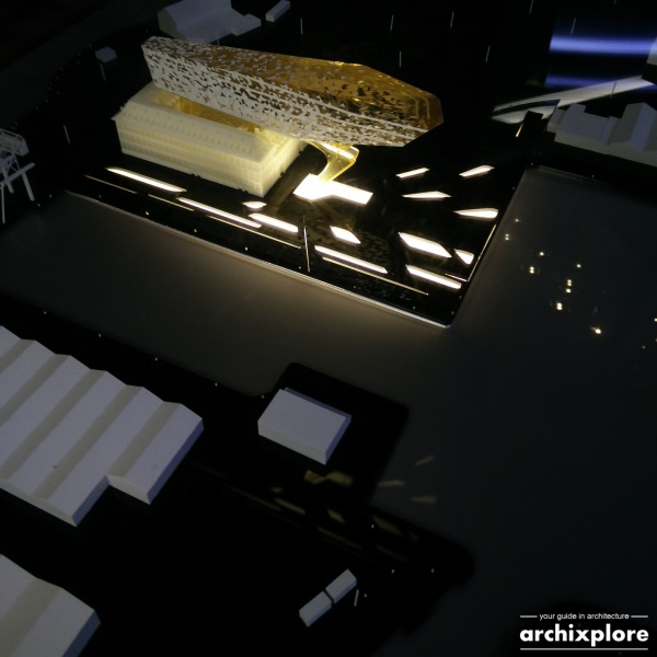Vier Arquitectos (Spain) break down the facade on the south and replace it by a 80 meter high tower. It’s a reference to the tower architect Van Averbeke designed in the original plans for the fire station. The facade of the tower exists out of 2 layers: outside gold colored aluminium panels and inside a glass facade. The architects also suggest to breaking down the quay, so the tower would be in the water. Between the concrete slabs of the surrounding square exotic plants would be sown.