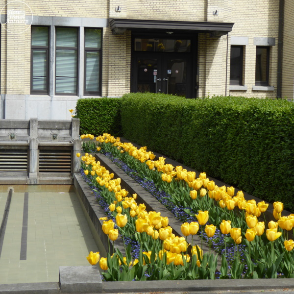 Something different this week than a museum or a sculpture. This time a building, a beautiful building, if I say so myself. A strange building too. It stands at the end of Nationalestraat, the beginning of the landscaped South, the end of the connecting boulevard. Here was a guesthouse for the mentally ill and foundlings (find the connection …). The building was abandoned around 1900 and after 20 years of vacancy it was ripe for demolition. It was broken down.