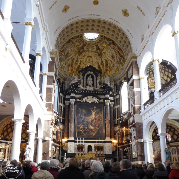 Last wednesday was the day … The first time that I could admire the painting change in the St.-Carolus Borromeus church. It is a shame that I had never seen it before (as a brand new city guide; o) It went fairly quickly: the total video I took lasts 6 minutes. It was a bit difficult to get Gerard Seghers’ Creation of the Cross from 1624 up, appropriate … Below a smaller video of the switch.