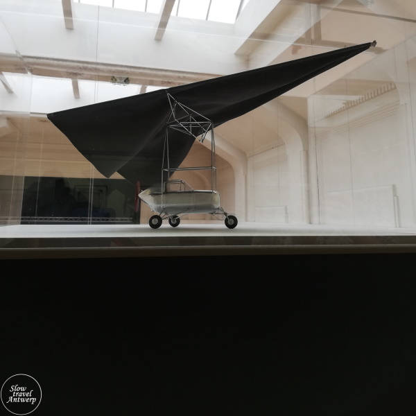 Eén van de bekendste Antwerpse kunstenaar was Panamarenko. Hij had een fascinatie voor vliegen en dat zie je in zijn werken. Jaren geleden heb ik al eens een overzichtstentoonstelling van hem bezocht, in 2005 in Brussel. Het is dankzij een collega-gids dat ik de expo ben gaan bekijken en ben blij dat ze me op deze tentoonstelling gewezen heeft (en is meegegaan).