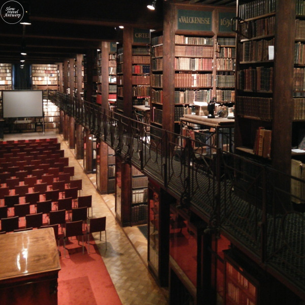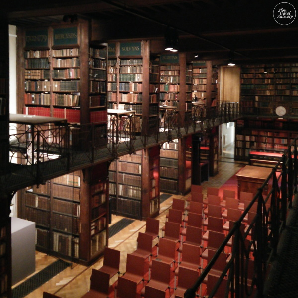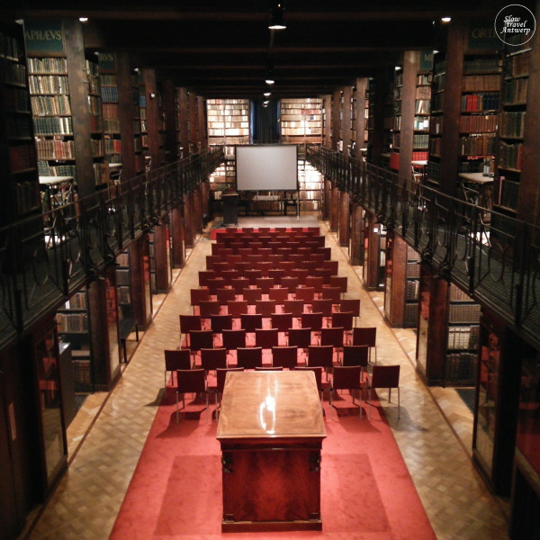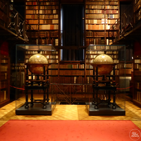 The Nottebohmroom is a part of the Heritage Library Hendrik Conscience, a storage library. That means that, unlike the public library, you cannot borrow books and that they also keep all the books. The hall is a part of the warehouse, so here you can only see a piece of the entire collection of the library that has 1.5 million pieces. Here are also some works of art, such as the two globes from Bleau, the Egyptian cupboard and some busts.